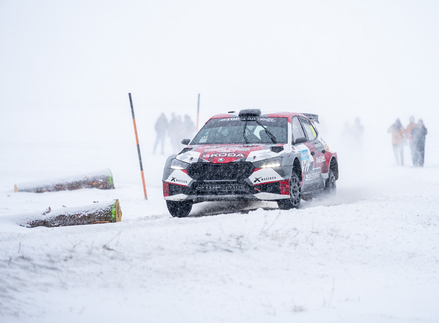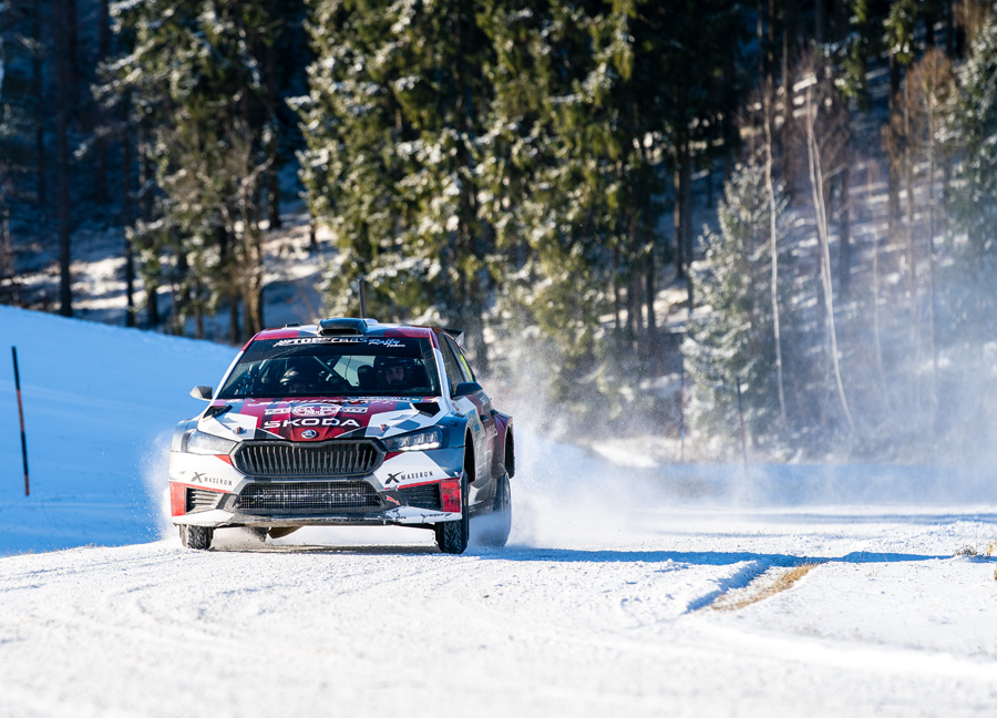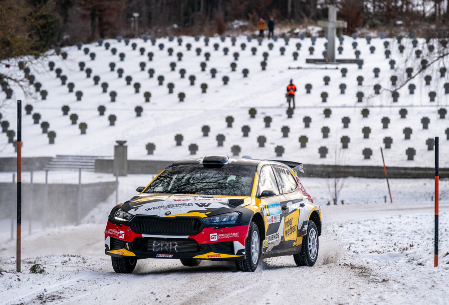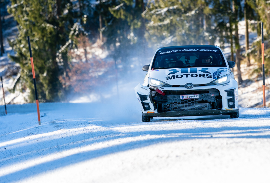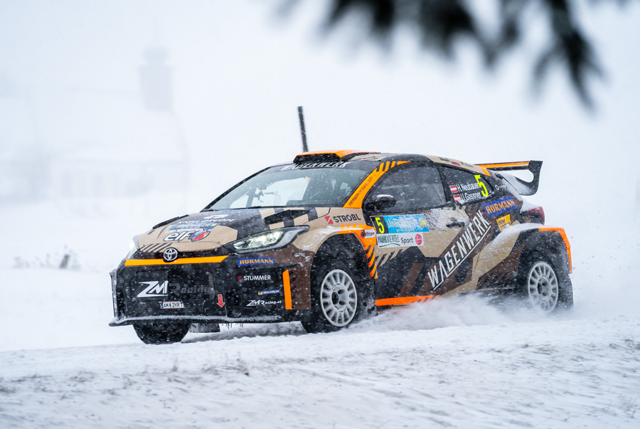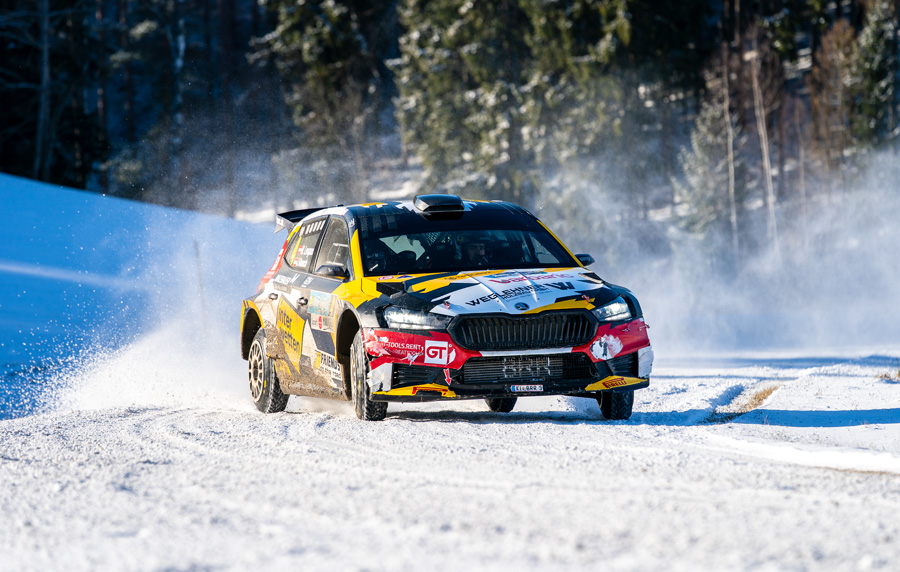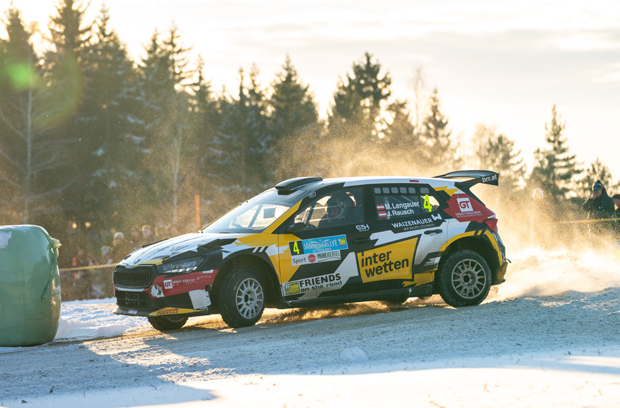 Obwohl internationale Klassepiloten wie der Este Romet Jürgensen oder der norwegische WM-Pilot Mads Østberg im Aufgebot standen, war bei der Jännerrallye 2026 schnell klar: Der diesjährige Sieg konnte nur entweder über den Gewinner der letzten beiden Jahre Michael Lengauer oder über den endlich danach heischenden Simon Wagner führen. Es entwickelte sich ein Sekunden-Thriller, in dem Wagner jedoch immer die Regie führte. Denn die Führung gab der österreichische Champion von Anfang an nie aus der Hand. Höchste Gefahr drohte ihm nach SP 8, als ihm ein völlig enthemmter Lengauer in Sportarena Liebenau plötzlich acht Sekunden abnahm und er Gefahr lief, die Spitzenposition vor der Übernachtung zum Entscheidungstag noch zu verlieren. Doch Simon Wagner blieb trotz seiner mitgebrachten Verkühlung cool und rettete sieben Sekunden Vorsprung in den letzten Tag. Dort brachte schon die erste Sonderprüfung in St. Oswald das vorentscheidende Schockerlebnis für Michael Lengauer, der sich zum Ziel gesetzt hatte, dem Spitzenreiter Simon Wagner mit einer morgendlichen Fabelzeit wenigstens einen Ansatz von Nervosität einzuhauchen. Doch schon kurz nach dem Start bremste ein Knall jäh die Bestrebungen des Verfolgers. „Wir haben irgendetwas unter dem Schnee getroffen, ich weiß aber nicht was, vielleicht ein Wasserrohr. Das war’s dann wohl“, war Lengauer im Ziel enttäuscht. Vom linken Vorderreifen seines Skoda Fabia hingen nur noch Fetzen an der Felge. Tragisches Fazit: Eineinhalb Minuten Rückstand auf Simon Wagner, der das erreichte, was Lengauer eigentlich wollte – die erste Bestzeit des Tages. Und weil ihm dann sein allererster Jännerrallye-Sieg verständlicherweise weit wichtiger war als das Entertainment, brachte Simon Wagner diesen relativ humorlos ins Ziel.
