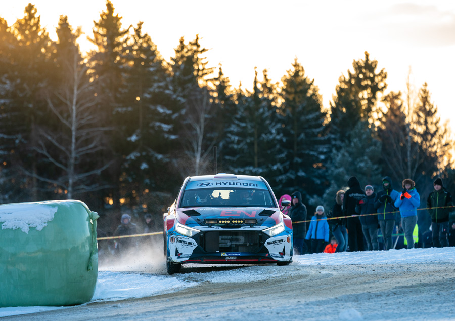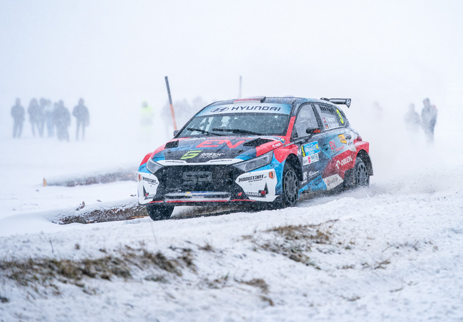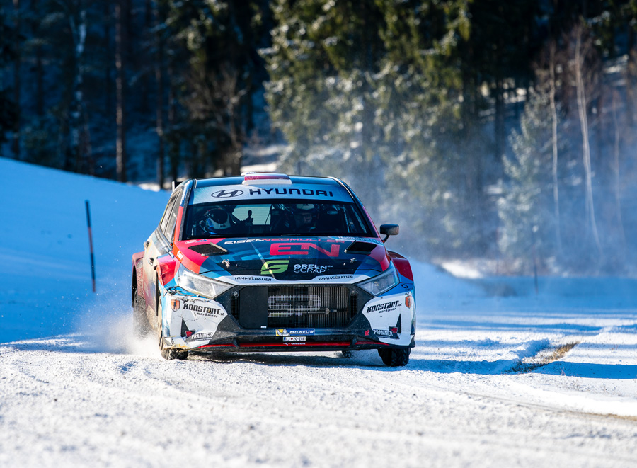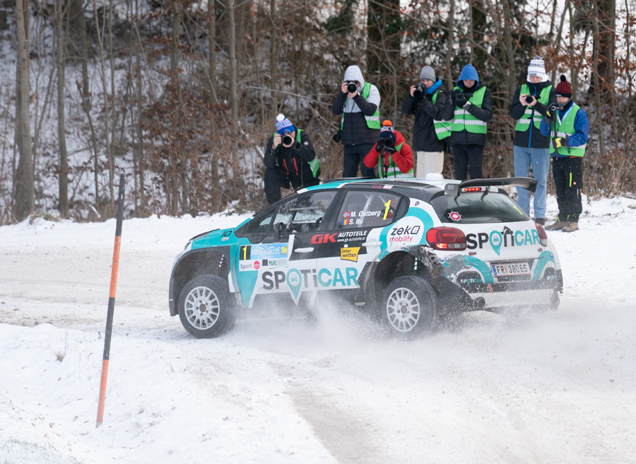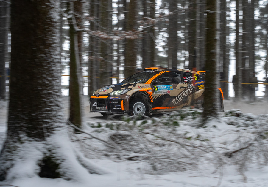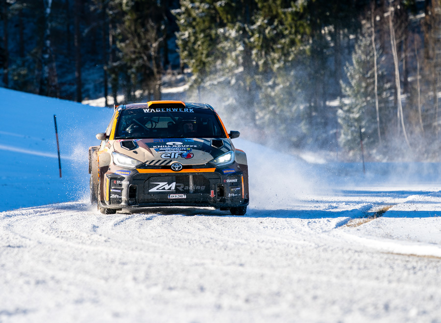 Obwohl internationale Klassepiloten wie der Este Romet Jürgensen oder der norwegische WM-Pilot Mads Østberg im Aufgebot standen, war bei der Jännerrallye 2026 schnell klar: Der diesjährige Sieg konnte nur entweder über den Gewinner der letzten beiden Jahre Michael Lengauer oder über den endlich danach heischenden Simon Wagner führen. Es entwickelte sich ein Sekunden-Thriller, in dem Wagner jedoch immer die Regie führte. Denn die Führung gab der österreichische Champion von Anfang an nie aus der Hand. Höchste Gefahr drohte ihm nach SP 8, als ihm ein völlig enthemmter Lengauer in Sportarena Liebenau plötzlich acht Sekunden abnahm und er Gefahr lief, die Spitzenposition vor der Übernachtung zum Entscheidungstag noch zu verlieren. Doch Simon Wagner blieb trotz seiner mitgebrachten Verkühlung cool und rettete sieben Sekunden Vorsprung in den letzten Tag. Dort brachte schon die erste Sonderprüfung in St. Oswald das vorentscheidende Schockerlebnis für Michael Lengauer, der sich zum Ziel gesetzt hatte, dem Spitzenreiter Simon Wagner mit einer morgendlichen Fabelzeit wenigstens einen Ansatz von Nervosität einzuhauchen. Doch schon kurz nach dem Start bremste ein Knall jäh die Bestrebungen des Verfolgers. „Wir haben irgendetwas unter dem Schnee getroffen, ich weiß aber nicht was, vielleicht ein Wasserrohr. Das war’s dann wohl“, war Lengauer im Ziel enttäuscht. Vom linken Vorderreifen seines Skoda Fabia hingen nur noch Fetzen an der Felge. Tragisches Fazit: Eineinhalb Minuten Rückstand auf Simon Wagner, der das erreichte, was Lengauer eigentlich wollte – die erste Bestzeit des Tages. Und weil ihm dann sein allererster Jännerrallye-Sieg verständlicherweise weit wichtiger war als das Entertainment, brachte Simon Wagner diesen relativ humorlos ins Ziel.